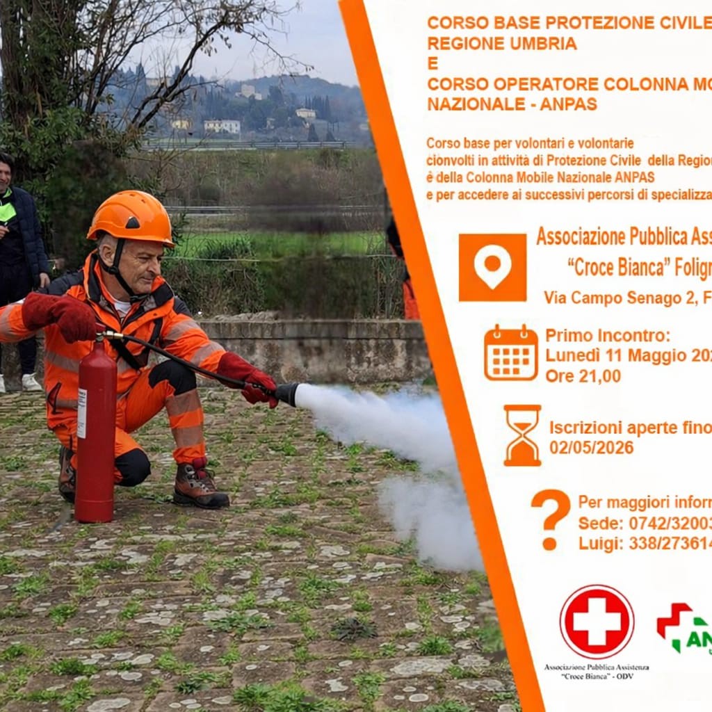 Vi aspettiamo lunedì 11 maggio 2026 per il primo incontro, in presenza, presso l’Associazione Pubblica Assistenza “Croce Bianca” Foligno – Via Campo Senago 2 – Foligno.