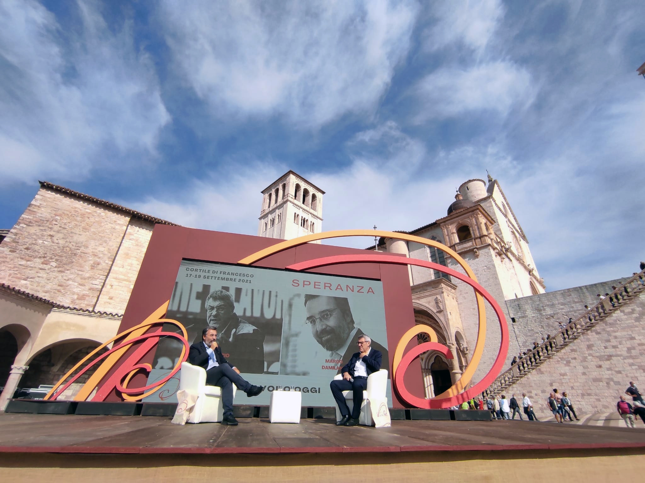 Buona affluenza alla settima edizione del Cortile di Francesco, nonostante la partecipazione limitata ai possessori di Green pass: un successo per tutta la comunità civile e religiosa vedere la risposta e l’entusiasmo del pubblico ad Assisi, segno, questo, di speranza e ripresa alla “normalità”. Un evento che ha riscosso consensi partendo proprio dal tema: Speranza. Argomento affrontato dagli oltre 70 relatori in dialogo nei 22 incontri organizzati dai frati della Basilica di San Francesco di Assisi e dall’associazione Oicos Riflessioni.