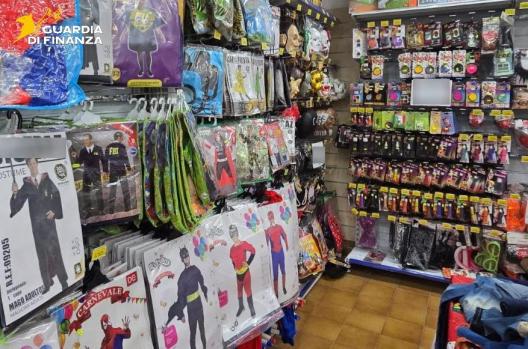 Maxi sequestro in un negozio di Spoleto di articoli di Carnevale ritenuti non sicuri, con il titolare raggiunto da una multa amministrativa.