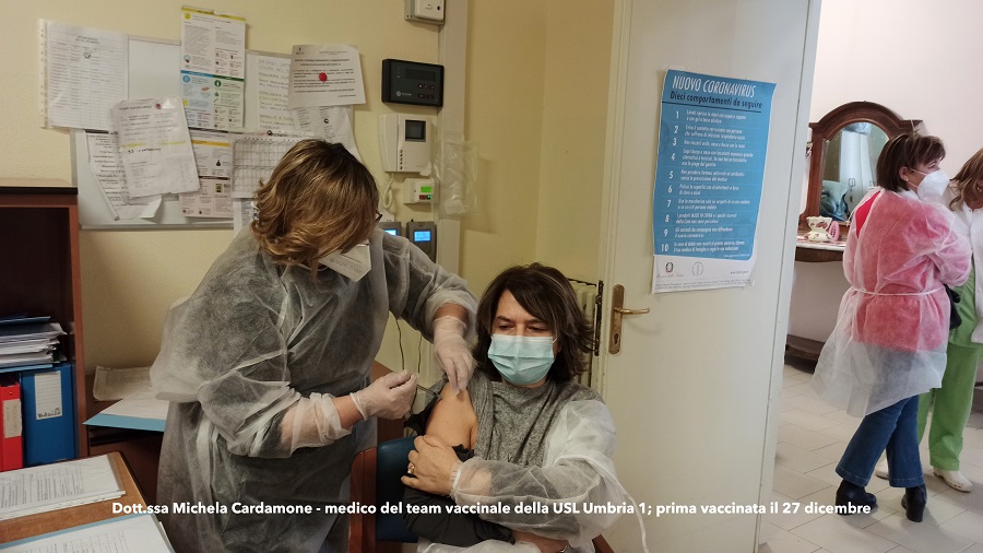 Tale procedura ha riguardato anche la dottoressa Michela Cardamone e l’infermiera Marina Pettirossi, le prime due vaccinate in Umbria, che fanno parte del team vaccinale della Usl Umbria 1.