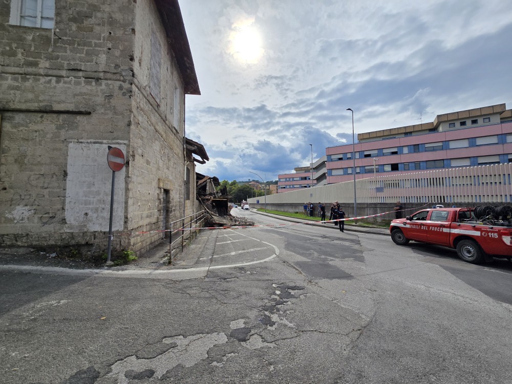Da valutare le cause del crollo. Tra le ipotesi anche quella che possa aver contribuito la scossa di terremoto di 3.8 gradi di magnitudo con epicentro a Massa Martana dell’altra sera.
