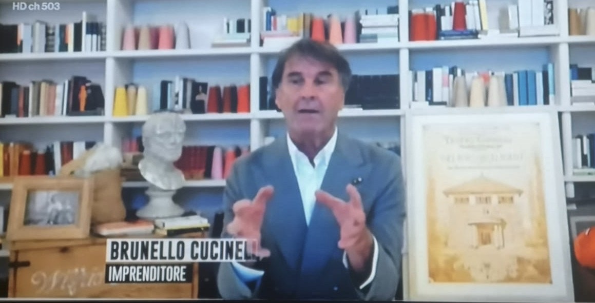 Brunello Cucinelli simbolo dell’Italia dei borghi che vuole risorgere dall’emergenza Coronavirus. L’imprenditore tra gli ospiti, in collegamento dalla sua azienda a Solomeo, ospite su Rai3 della trasmissione “Ogni cosa è illuminata”, condotta da Camilla Raznovich.