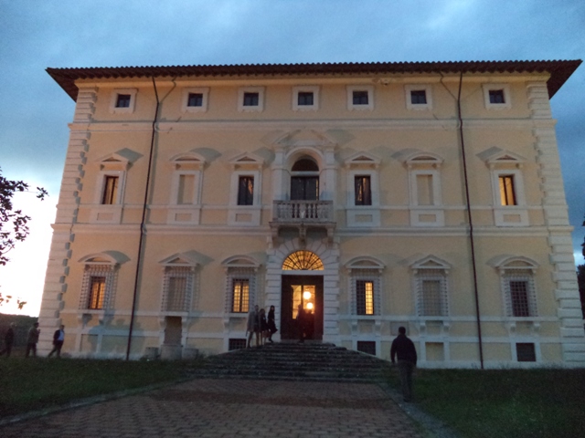 Villa Colle del Cardinale. E’ la più nota delle ville umbre, detta del Cardinale, dal suo primo proprietario, si eleva imponente sul poggio dominante la stretta valle del torrente Caina, ai piedi del versante occidentale del monte Tezio, vicino a Perugia. Il complesso domina la campagna dall’alto di un terrazzamento e occupa l’intero colle del Cardinale, di probabile connotazione archeologica, ricco di acque, di condotti segreti, alto sulla valle che portava sulle vie del mare, verso i domini dei Vitelli e dei Montefeltro. Committente dei lavori di costruzione di quella che nasce come residenza estiva di grande magnificenza, rispondente al concetto rinascimentale di “luogo di delizie”, intorno al 1575, fu il cardinale Fulvio della Corgna, che con molta probabilità si rivolse all’architetto Galeazzo Alessi, progettista favorito dalla potente famiglia. Il nipote del cardinale, Diomede della Penna, da lui adottato, ereditò la residenza prima che la famiglia si estinguesse e che la villa fosse venduta nel 1644 agli Oddi, diventati Oddi Baglioni i quali, nella seconda metà dell’Ottocento, ne fecero un importante salotto culturale che rimarrà tale anche con le successive famiglie Cesaroni e Parodi. Il palazzo appare come un blocco compatto nella sua pianta rettangolare, poggiato su un terrazzamento con grandi locali interrati attraversati dalla galleria per l’accesso delle carrozze. L’importanza della facciata principale è sottolineata dal portone d’ingresso ad arco bugnato con scalinata, sovrastato dal balcone del salone d’onore su cui si apre un finestrone più alto e rientrante rispetto alle altre finestre. All’interno la villa si articola nel sontuoso scalone d’onore, nel salone centrale con soffitto ligneo a cassettoni riccamente ornato e pareti riccamente decorate. Gli affreschi della villa sono stati firmati , nel 1581 da Salvio Savini, pittore preferito dai della Corgna. Ulteriori decorazioni sono del Leopardi e del Labruzzi. Il complesso si avvale di diversi annessi quale la casa del custode, del giardiniere, la limonaia, la serra delle orchidee, i quattro casini. All’estremità meridionale del complesso sorge il borgo, un tempo di servizio alla villa. L’area verde è organizzata attorno al lungo viale d’accesso che risale la collina. L’impianto è cinquecentesco e ha subito notevoli trasformazioni nel Seicento e Settecento, ragion per cui attualmente l’impronta visibile è quella barocca. A sinistra della villa è il giardino d’inverno su tre livelli raccordati da scale, mentre a destra si sviluppa il parco all’inglese, modificato nella seconda metà dell’Ottocento (ingresso principale, piazza grande con la fontana dell’Airone, lago con le isole) e arricchito di nuove piante. La villa è di proprietà del ministero per i Beni Culturali dal 1996 e con la limonaia viene utilizzata per convegni ed eventi.