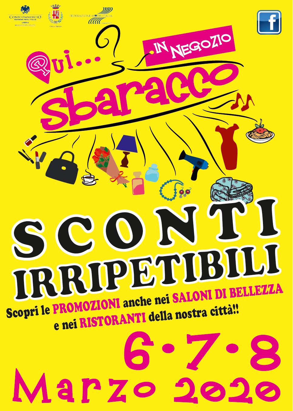 Alla sua terza edizione, lo Sbaracco… in Negozio – tre giorni di sconti eccezionali e di offerte speciali, per iniziativa di Confcommercio Spoleto e Federmoda Umbria, con il patrocinio del Comune di Spoleto – amplia ancora di più la platea delle imprese aderenti con altri settori di attività, tra cui saloni di bellezza e i ristoranti che offriranno ai propri clienti promozioni su servizi e prodotti.