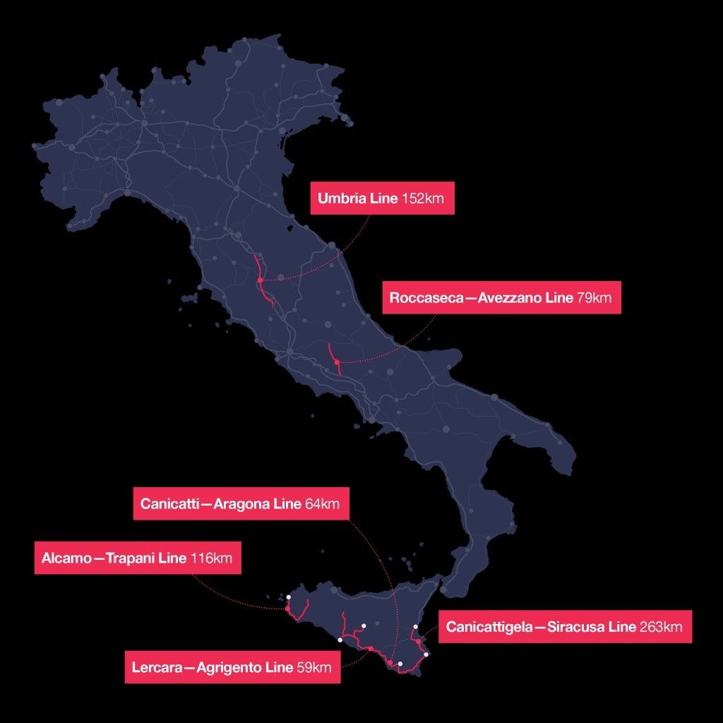 “Questo accordo – ha specificato Melasecche – interesserà quattro regioni italiane: circa 480 chilometri di binari in Sicilia, 152 chilometri delle Ex Ferrovia Centrale Umbra e 80 chilometri della linea Roccasecca – Avezzano nelle Regioni Lazio e Abruzzo”.
