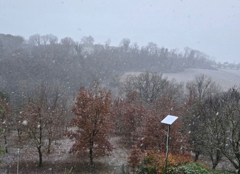 Precipitazioni nevose lungo la dorsale appenninica, con nevicate deboli in atto, fino in pianure, in valle umbra spoletina