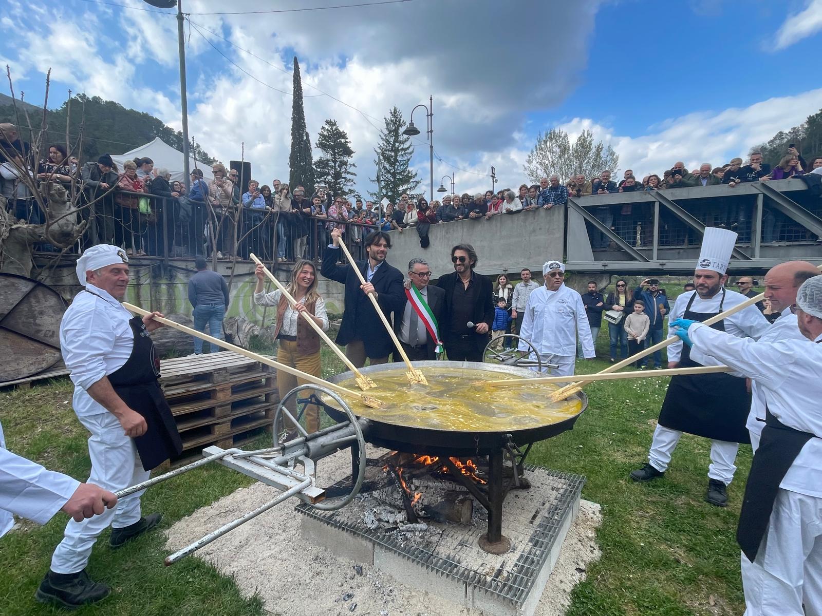 Alle 16 il via all’atteso momento clou della giornata, la preparazione della frittata al tartufo dei record che ha visto il celebre attore Giulio Berruti (accompagnato dalla compagna, Maria Elena Boschi, che è però rientrata a Roma subito dopo pranzo) e dall’ex olimpionica e giornalista televisiva Margherita Granbassi.