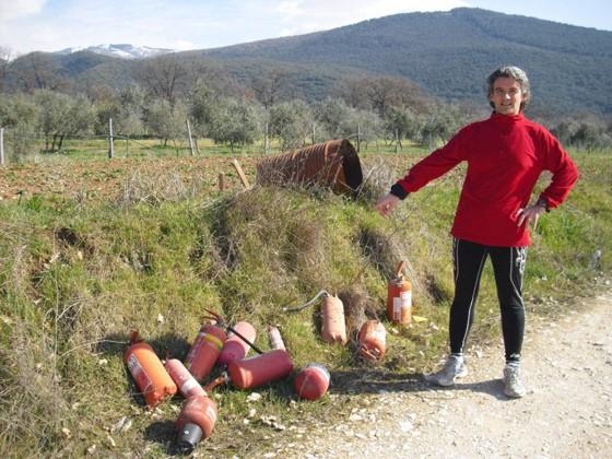 Mentre stava facendo il suo consueto allenamento podistico con un suo amico in una delle zone ambientali più belle della periferia, il folignate Giacomo Genzaga si è imbattuto oggi in uno scarico abusivo di numerosi estintori ad uso industriale messo in atto da ignoti. E' quanto si apprende da una nota del comune di Foligno. Lo scarico è stato effettuato a ridosso di una paesaggistica strada di pianura in terra battuta che da S. Eraclio conduce alla Torre di Matigge, nei pressi di una nota ditta di calcestruzzo. “E’ ingiusto e disonesto – ha commentato Giacomo Genzaga – lasciare a bordo strada questi contenitori di sostanze antincendio, inquinanti sotto tutti i punti di vista, incluso quello visivo, quando esistono isole ecologiche dove poterli portare per l’adeguato smaltimento”. “Mi auguro – ha proseguito – che l’autore di tale sconsiderata azione possa essere rintracciato, anche perché alcuni degli estintori lasciati in questa zona hanno etichette con scritte e codici relativi a chi li ha prodotti e probabilmente anche a chi li ha acquistati. Invito perciò le forze dell’ordine e le autorità preposte alla difesa dell’ambiente – ha concluso il giovane podista – a recarsi nel sito indicato per bonificare la zona e possibilmente per risalire all’incivile inquinatore”.