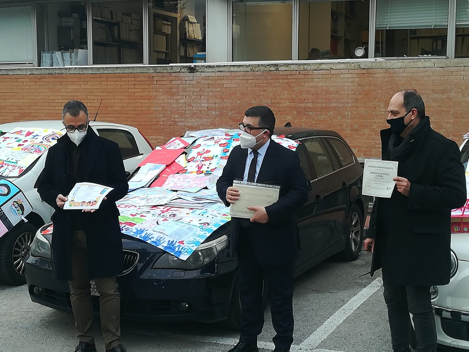 Martedì 22 dicembre, presso il parcheggio degli uffici dell’Ospedale Santa Maria di Terni, ha avuto luogo la cerimonia di consegna degli disegni realizzati dagli alunni delle scuole primarie di Terni. Nel corso dell’iniziativa, “I colori della gratitudine”, promossa dall’assessore alla scuola del comune di Terni, Cinzia Fabrizi, e dal commissario straordinario del “Santa Maria”, Pasquale Chiarelli, i rappresentanti delle diverse scuole hanno donato i disegni destinati ai dipendenti dell’Azienda Ospedaliera.