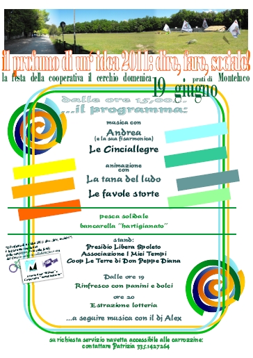 Domenica 19 giugno, presso i Prati di Monteluco, si terrà la festa annuale della Cooperativa Sociale “Il Cerchio” di Spoleto.