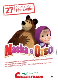 Nel pomeriggio di domenica, a partire dalle ore 15.00, Masha e Orso si recheranno presso la galleria del Centro Commerciale Collestrada, dove incontreranno i loro piccoli fan per scattare insieme tante foto ricordo.