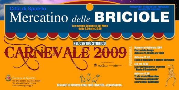 Domenica 8 febbraio si tiene il terzo appuntamento con il “Mercatino delle Briciole”, tornato nella sua sede naturale nel centro storico di Spoleto, in piazze e vie libere dalle auto. Le vie e le piazze della parte alta della città tornano quindi a fare da palcoscenico ad un appuntamento ormai consolidato che l'Amministrazione intende rilanciare nel centro storico. Dopo il successo dei primi due appuntamenti, il “Mercatino delle Briciole”, che si svolge ogni seconda domenica del mese e che si arricchisce sempre di più di nuovi spazi e di nuove tipologie di vendita, torna a presentare articoli di artigianato locale e non, prodotti tipici, oggettistica, collezionismo e antiquariato. Le bancarelle, con oltre 100 espositori, sono allestite nelle vie e nelle piazze che nuove sistemazioni e pavimentazioni, nell'ambito del piano di riqualificazione del centro storico della città, rendono spazi ideali per il mercatino. Il mercatino si svolge dalle 8 alle 20 lungo Viale Matteotti, da Piazza Carducci a Piazza della Libertà, in parte di Corso Mazzini, in Piazza Fontana e in Via Benedetto Egio. L'appuntamento dell'8 febbraio coincide con le manifestazioni per il Carnevale Spoletino 2009. Oltre ai consueti spazi dedicati al mercatino sono previste molte iniziative collaterali: dalle ore 15, per le vie del mercatino, la MaboBand è protagonista di un coinvolgente spettacolo itinerante fatto di musica e animazioni. A Piazza della Genga dalle 15 alle 18 sono in programma una serie di momenti ludici, di animazioni e di degustazioni. Si comincia alle 15 con una festa in Maschera accompagnata da dolci di Carnevale. Sempre a Piazza della Genga, alle 16, “Storie di Cuntastorie” a cura del Creativendoleria, spettacolo di cantastorie con fiabe per bambini. In prossimità del mercatino è possibile usufruire del parcheggio coperto della Spoletosfera che prevede uscite proprio nei luoghi dove sono esposte le bancarelle, in Piazza Carducci e in Viale Matteotti mentre dagli altri parcheggi si può accedere al “Mercatino delle Briciole” utilizzando le navette di trasporto pubblico che transitano sia in Piazza Garibaldi, Via Anfiteatro, Via delle Terme che in Viale Martiri della Resistenza fino a Piazza Carducci secondo il seguente orario: la mattina dalle 7.05 alle 13,05 ogni ora e il pomeriggio dalle 13,45 alle 20,09 ogni mezz'ora.