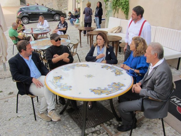 Governatrice sul set – Stamattina c’è stata la visita sul set della presidente della regione Catiuscia Marini, che dopo aver incontrato la numero uno della Lux Vide Matilde Bernabei ha raggiunto sul set Terence Hill, impegnato nelle riprese di alcune scene in solitaria. I due hanno conversato per diversi minuti, durante i quali l’attore italo-americano ha ricordato con piacere alcuni episodi della sua infanzia umbra. La governatrice ha conosciuto anche il location manager della fiction Stefano Galli, uno dei principali fautori dell’arrivo di Don Matteo a Spoleto. Galli è perfettamente a suo agio con il cast, grazie anche alla sua lunga esperienza di figurante televisivo, e non è raro che li coinvolga in serate conviviali. Ieri sera per esempio ha portato un gruppetto di attori, tra cui Pietro Pulcini e Natalie Guetta, a mangiare in un noto ristorante della prima periferia di Spoleto, tra lo stupore degli avventori.