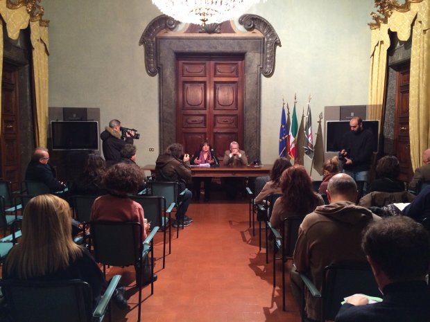 Una conferenza dai toni distesi quella tenutasi questa mattina nel salone d’onore di Palazzo Donini, volutamente distesi per spegnere quanto prima le polemiche sulla 9 edizione di Don Matteo che giovedì scorso ha registrato il record di ascolti con lo share che ha toccato quota 42% nel picco di punta. Tema dell’incontro il dibattuto trasferimento della nona stagione della fiction Don Matteo da Gubbio a Spoleto. Un intervento che si è reso necessario e che ha visto al tavolo dei relatori gli assessori alla cultura Fabrizio Bracco e alla agricoltura Fernanda cecchini, dai cui uffici sono arrivati i finanziamenti alle “pillole” che vanno in onda poco prima delle puntate del prete-detective che aiuta i carabinieri. Seduto in platea anche l'ex sindaco di Gubbio e attuale consigliere Orfeo Goracci (che ieri ha tuonato “a Spoleto 'Don Matteo', a Gubbio il Css, ovvero la mondezza”), e il capo ufficio stampa della città dei Ceri, Anna Boninsegni, che ha annunciato la cittadinanza onoraria a Terence Hill.