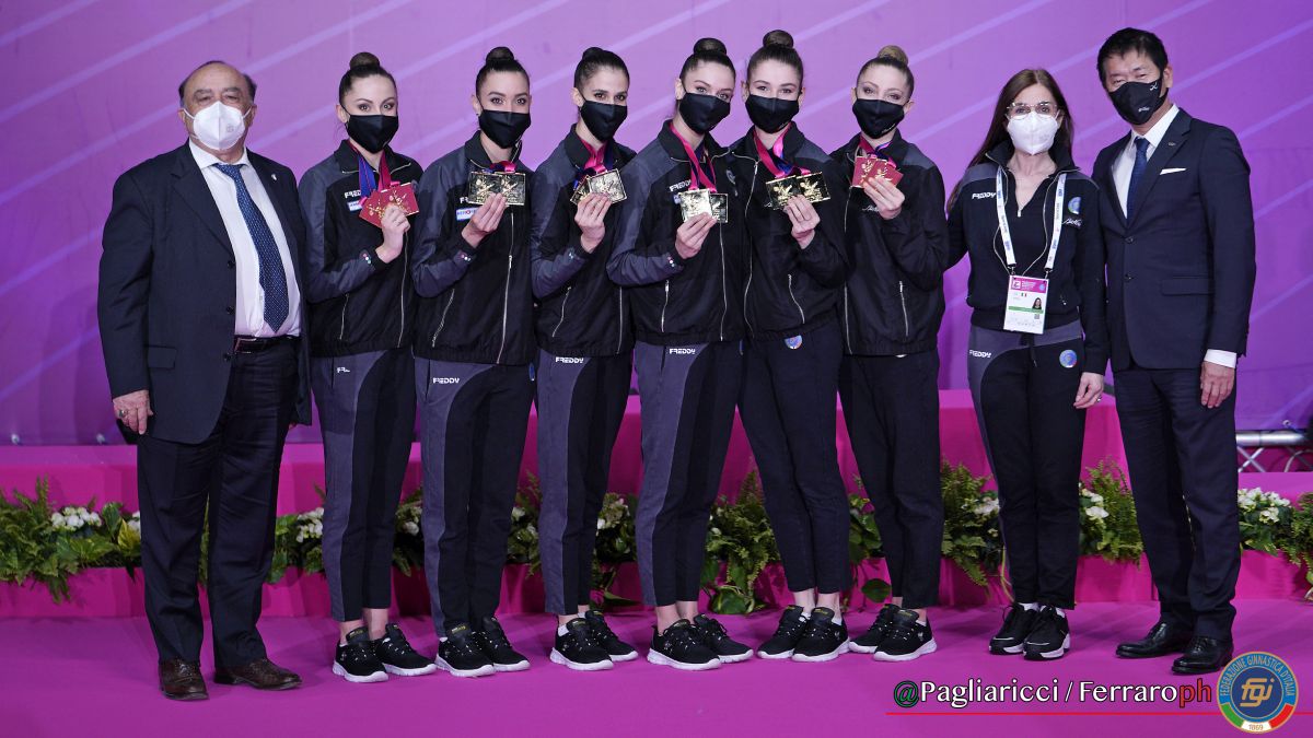 A premiare le ginnaste e le squadre sul podio il presidente della Federginnastica Gherardo Tecchi, il numero uno della Federazione Internazionale Morinari Watanabe, la delegata del sottosegretario di Stato con delega allo Sport, Linda Elezi, l’assessore allo sport del comune di Pesaro, Mila Della Dora e il presidente del Coni Marche, Fabio Luna. Alla Vitrifrigo Arena di Pesaro erano presenti le maggiori autorità della Federazione Ginnastica d’Italia: il vicepresidente Rosario Pitton, il responsabile delle relazioni internazionali Gianfranco Marzolla, la consigliera federale Marina Piazza e il team manager dell’Artistica maschile Andrea Facci. La competizione, giunta alla dodicesima edizione, è stata organizzata dal COL Turismo & Sport presieduto dalla Team Manager della sezione Paola Porfiri. Dopo il circuito delle World Cup la stagione agonistica dei piccoli attrezzi prosegue con il Campionato Europeo di Ginnastica Ritmica in programma a Varna, in Bulgaria, dal 9 al 13 giugno 2021.