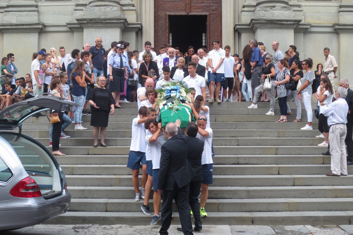 Il saluto degli amici – La parola è poi passata ai coetanei e compagni di squadra, che hanno voluto leggere alcune lettere piene di dolore ma che hanno dimostrato l’enorme affetto per Lamberto. Tutti gli amici del 16enne hanno omaggiato “Lamby” definendolo il più “bociarone” (“chiacchierone” in dialetto tifernate), “disponibile“, “generoso“, “colui che non ha mai giudicato nessuno” e lo hanno “salutato” sicuri che la sua presenza continuerà ad essere viva in ognuno di loro.