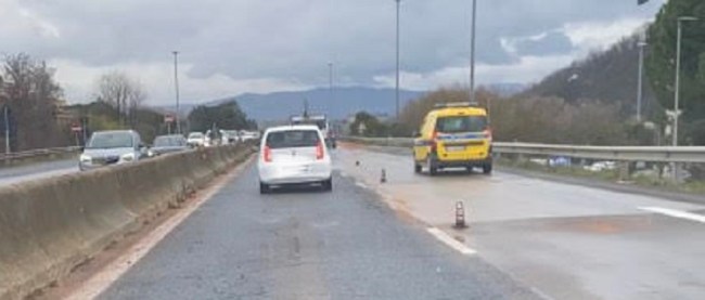 La sede stradale è stata ripulita, nella notte, dal gasolio perso dal tir che si è intraversato lunedì, bloccando la E45 all’altezza di Ponte San Giovanni e tagliando in due l’Umbria.