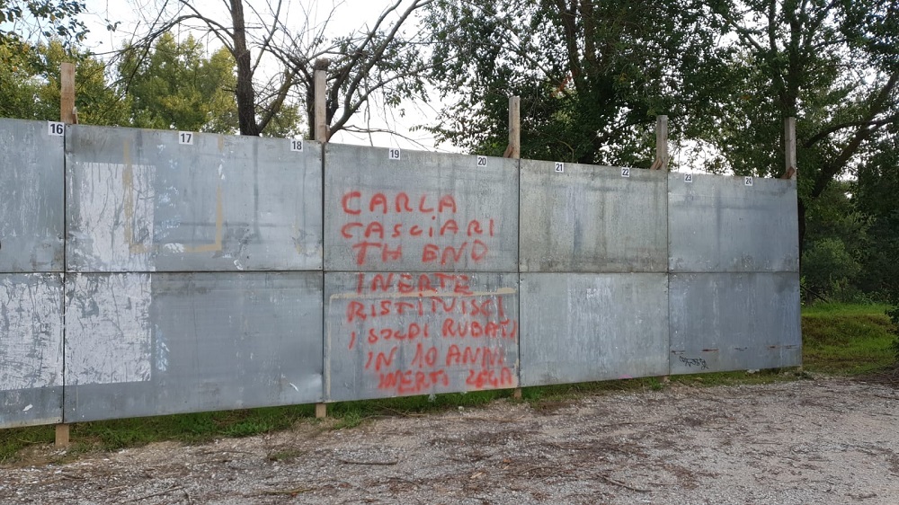 Gravi insulti rivolti alla consigliera regionale uscente Carla Casciari. In uno degli spazi allestiti per le affissioni della campagna elettorale per le regionali del 27 ottobre è comparsa una scritta, fatta con vernice rossa, si inneggia (anche con qualche incertezza ortografica) alla sua mancata ricandidatura. Ma il messaggio poi prosegue chiamando in causa l’esponente del Pd, manifestando, con accuse pesanti, insoddisfazione per la scarsa attività che secondo l’anonimo contestatore la Casciari avrebbe svolto a Palazzo Cesaroni in 10 anni (in realtà qualcosa meno, vista la fine anticipata della legislatura) di politica. “Inerte” la si definisce nella scritta.