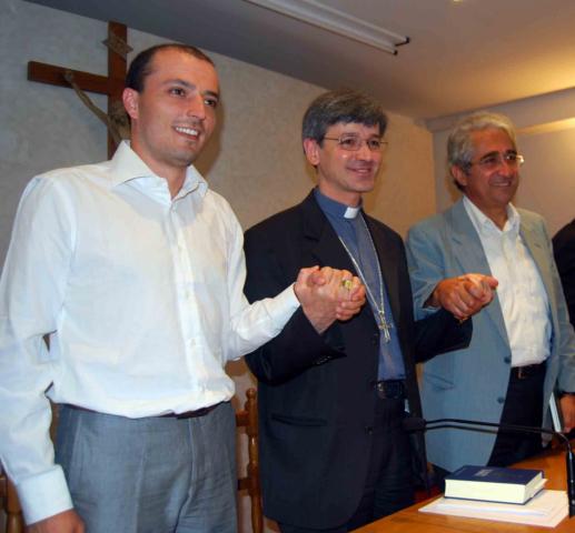 Enrico Presilla (a sinistra nella foto) è il nuovo direttore responsabile della “Gazzetta di Foligno”, storico settimanale della Diocesi di Foligno. Ad annunciarlo, in una conferenza stampa indetta stamattina presso l'Istituto Missionario dei Padri Dehoniani, il vescovo di Foligno monsignor Gualtiero Sigismondi. Enrico Presilla, 34 anni impiegato al Ministero del Lavoro e presidente dell'Istituto San Carlo di Foligno, succede a don Germano Mancini che si era dimesso dall'incarico il 15 luglio scorso, dopo 30 anni di servizio tra le pagine del settimanale fondato nel 1886 da monsignor Michele Faloci Pulignani. Ad affiancare Enrico Presilla ci sarà un direttore editoriale: il professor Antonio Nizzi, docente di Storia e Filosofia al Liceo Classico “Federico Frezzi” di Foligno. La nuova “Gazzetta” potrà inoltre contare su una rinnovata redazione: Guglielmo Tini e Mauro Pescetelli (docenti di lettere) che si occuperanno del settore cultura e comunicazione); Anacleto Antonini (insegnante di religione) e Francesco Bovi (docente di filosofia) che avranno il compito di raccontare la vita della Diocesi; Giuliana Barbini e don Giovanni Zampa che approfondiranno il rapporto chiesa-società; don Carlo Maccari e Villelmo Bartolini (imprenditore e capo scout) che assicureranno un'analisi rivolta ai problemi etici e sociali sul territorio. Faranno inoltre parte della redazione i teologi mons. Dante Cesarini e don Sergio Andreoli. Ci sarà anche il giovane Fabio Massimo Mattoni del Sinodo dei Giovani. La “Gazzetta” potrà inoltre contare su alcuni storici collaboratori. Durante la conferenza stampa di presentazione del nuovo assetto redazionale, il vescovo di Foligno monsignor Gualtiero Sigismondi nel suo intervento (di cui si allega intervento integrale) ha sottolineato come il punto di forza della rinnovata “Gazzetta” sia il volontariato. Il neo direttore responsabile Enrico Presilla espresso gratitudine ed entusiasmo per il nuovo incarico e affermato che il rinnovato settimanale diocesano sarà “luogo d'incontro e di confronto sul territorio, nella ricerca della verità”. Il direttore editoriale Antonio Nizzi che ha definito la nuova “Gazzetta” “un ponte tra Chiesa e città”, “una voce libera e critica che si impegnerà ad offrire un punto di vista cristiano per la crescita di Foligno, nel rispetto della pluralità”. Il settimanale della Diocesi di Foligno torna in edicola il 13 settembre prossimo, dopo oltre un mese di pausa necessaria alla riorganizzazione del giornale. Si presenterà ai lettori con un nuovo formato e una nuova veste grafica: formato tabloid, più piccolo rispetto al precedente e stampa su carta riciclata. La sede della redazione sarà in piazza Faloci Pulignani, presso la Curia Vescovile di Foligno. Ed ecco, in versione integrale, l'intervento introduttivo del vescovo. “Se dovessimo riguardare l'esito infelice che hanno ai giorni nostri i diversi giornali politici e non politici che si pubblicano nelle nostre piccole città, noi certamente non dovremmo prender la penna per iniziarne uno nuovo”. Traendo spunto da questa sottolineatura – attualissima! -, compiuta il 2 gennaio 1886 da mons. Michele Faloci Pulignani ne Il Giornale di Foligno, la Gazzetta volta pagina. Sono consapevole della responsabilità di questo compito, che mi sono assunto “senza sottintesi”, a seguito delle dimissioni di don Germano Mancini, a cui rinnovo il mio grazie più sincero per il prezioso e generoso servizio, svolto per lunghi anni. La pausa estiva che il settimanale diocesano è solito prendersi è stata necessariamente più lunga, ma è diventata occasione preziosa di discernimento e di nuova progettualità, non solo per trovare un nuovo assetto redazionale, ma anche per far emergere la linea editoriale da seguire: quella del “rinnovamento nella continuità”. La prima novità che la Gazzetta offre ai lettori è quella assicurata dalla redazione, che ha come direttore responsabile il dott. Enrico Presilla e come direttore editoriale il prof. Antonio Nizzi. A loro esprimo la mia riconoscenza per aver accolto, senza paura e senza calcoli, questo delicato servizio. La scelta di due direttori segue la linea della sinodalità, cioè del “camminare insieme”, poiché “ogni volta che si annulla l'avverbio insieme, si annulla anche il verbo camminare”. Al dott. Presilla e al prof. Nizzi è affidato il compito di coordinare la nuova redazione della Gazzetta, composta da persone molto diverse, per competenza e provenienza, ma legate da una forte passione ecclesiale e dal desiderio sincero di mettere a disposizione del settimanale diocesano il proprio tempo, la propria professionalità, il proprio punto di vista qualificato. Ciò che accomuna l'intera redazione è il volontariato; a prima vista, questo, potrebbe sembrare un punto debole, in realtà è un punto di forza. Il volontariato, nelle sue diverse forme, è una scuola di vita che educa alla solidarietà e alla disponibilità, a dare non semplicemente qualcosa, ma se stessi. Non c'è professionalità che possa prescindere dal mettere a disposizione tanto le proprie competenze quanto la propria vita, a partire dal proprio tempo libero, di cui tutti siamo avidi custodi. Alla redazione viene affidato il compito e la responsabilità di fare della Gazzetta non l'agenda dell'editore e, tanto meno, la bacheca dei fatti di cronaca locale. Il settimanale diocesano intende distinguersi, nel panorama dei giornali locali, sia come luogo di confronto dei fedeli, sia come spazio di incontro con coloro che vivono ai margini o al di fuori della vita ecclesiale. Coltivare questa apertura, attraverso una consapevole scelta dei contenuti ed una particolare attenzione al linguaggio e allo stile della comunicazione, è un compito a cui la Gazzetta non si è mai sottratta, ma vuole continuare a farlo facendo emergere i punti di tangenza, prima ancora dei punti di divergenza. In altre parole, il settimanale diocesano, se