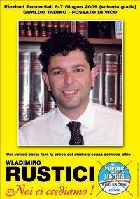 Ultima raccomandazione. Dato che tali forme di protesta si sa come iniziano e non, purtroppo, come si concludono, mi appello al buon cuore del Sen. Franco Asciutti nel caso in cui si verifichi un evento imprevisto e che, in tal evenienza, voglia contribuire (visto anche il doppio e lauto trattamento economico che percepisce dal Senato e dalla Provincia), almeno in parte, al sostentamento dei miei tre figli di 2, 4 e 6 anni che resterebbero senza un sufficiente mantenimento economico. f.to Dott. Wladimiro Rustici, Primo dei non eletti PDL al Consiglio Provinciale