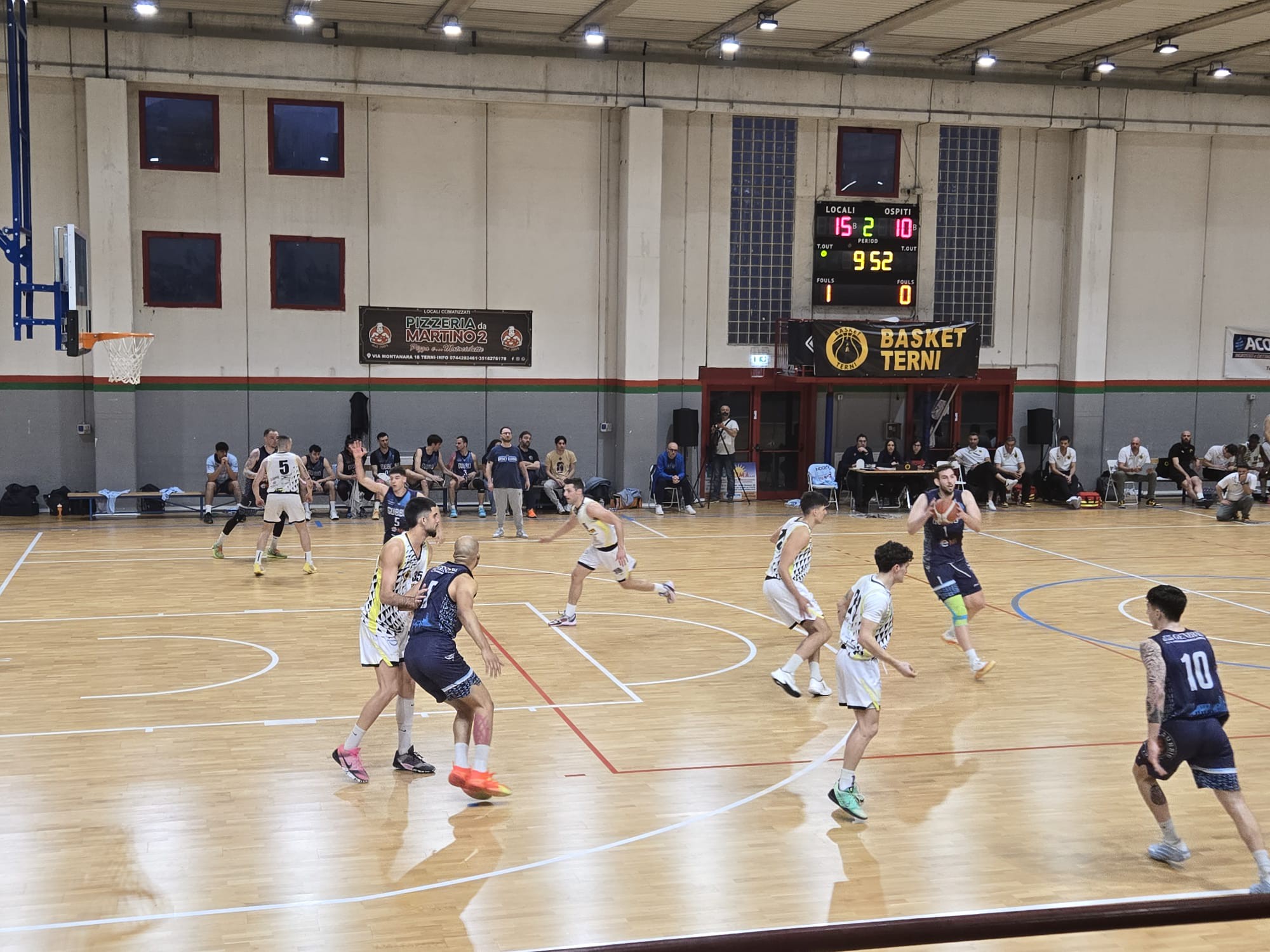 Davanti a un pubblico numeroso e caloroso, è Terni a partire con maggiore intensità, aprendo il match con un parziale di 7-0 e mettendo subito in difficoltà l’attacco eugubino. A sbloccare Gubbio è Mulazzani, autore di 5 punti consecutivi che tengono i suoi a contatto. Il primo quarto, caratterizzato da grande fisicità e difese aggressive, si chiude sul 15-10 per i padroni di casa.