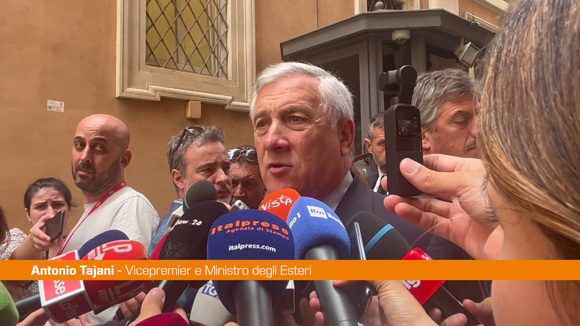 coordinatore di Forza Italia, Antonio Tajani, parlando con i giornalisti all’uscita da Montecitorio.