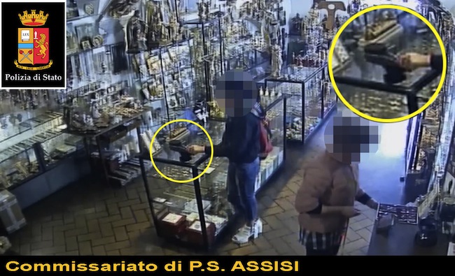 A quel punto per rintracciarla hanno deciso di perlustrare la zona e i luoghi da lei abitualmente frequentati. Nel frattempo, dalla Sala Operativa del Commissariato, è arrivata la segnalazione di un furto consumato all’interno di una gioielleria in pieno centro ad Assisi. A commetterlo una donna, somigliante, dalla descrizione, proprio alla 40enne. Una volta arrivati in negozio, gli agenti hanno controllato le immagini del sistema di videosorveglianza, e hanno trovato conferma di quella che fino a quel momento sembrava essere una semplice intuizione.
