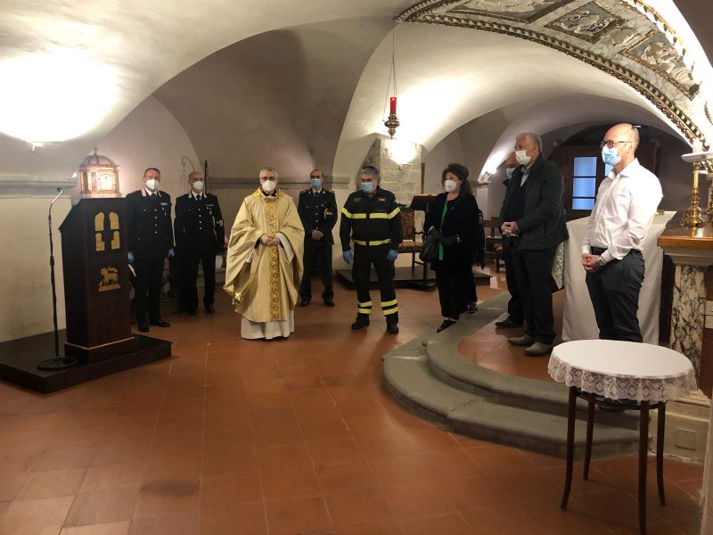 Dopo circa 70 giorni senza celebrazioni pubbliche, a causa delle restrizioni dovute al coronavirus, il vescovo mons. Domenico Cancian, ha presieduto la prima messa con i fedeli, ovviamente nel rispetto delle disposizioni, nella cripta della cattedrale di Città di Castello.