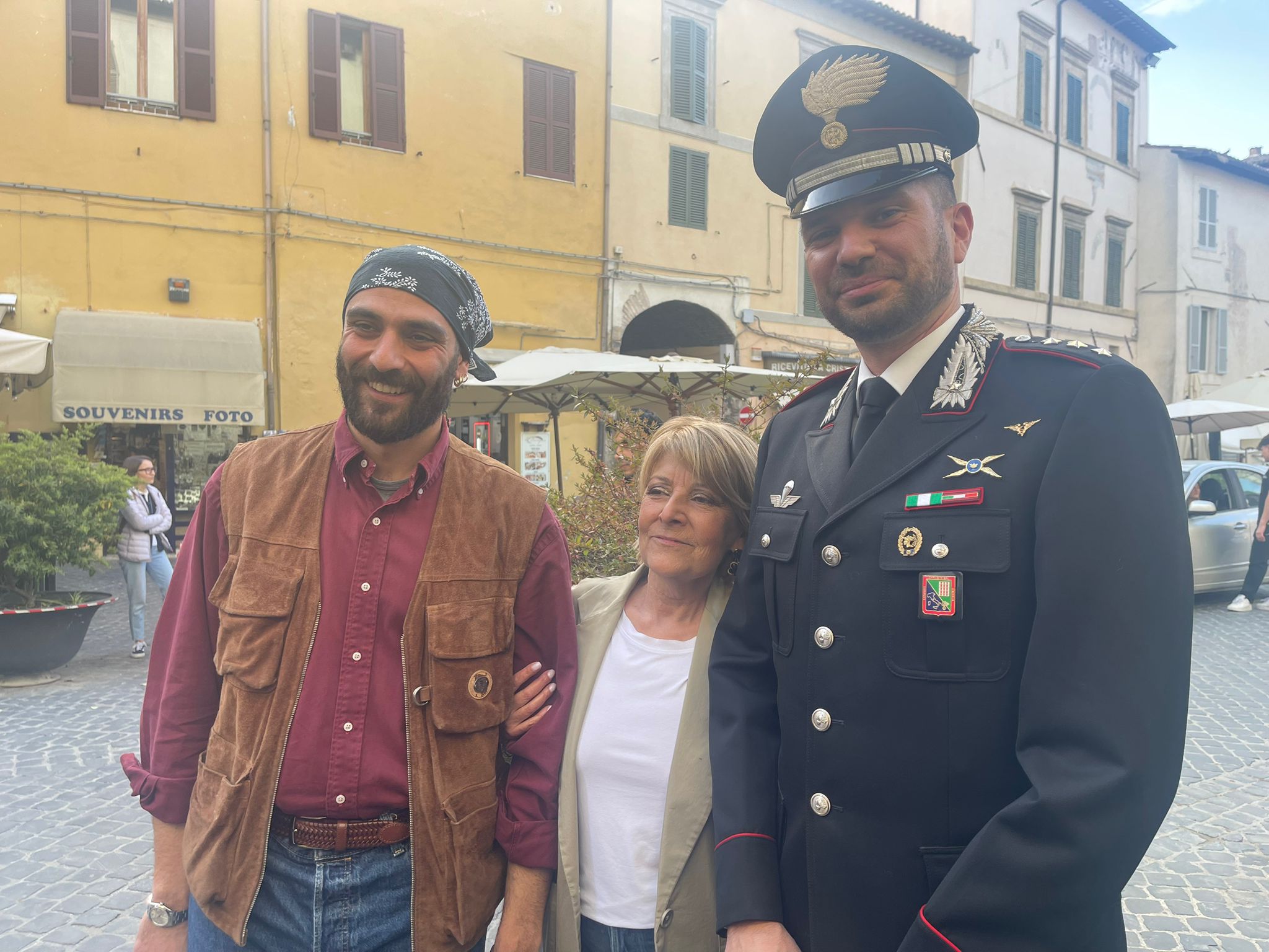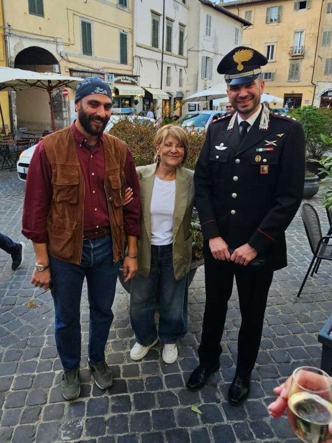 Tra coloro che non sono voluti mancare al saluto della Cedroni alcuni addetti della Lux Vide, società che produce la fortunata fiction di “Don Matteo” che dal 2013 è sbarcata a Spoleto, tra cui sceneggiatori e l’attore Eugenio Mastrandrea che interpreta il ruolo del Capitano Diego Martini che, dall’edizione 14, coordina gli uomini del maresciallo Cecchini (Nino Frassica).