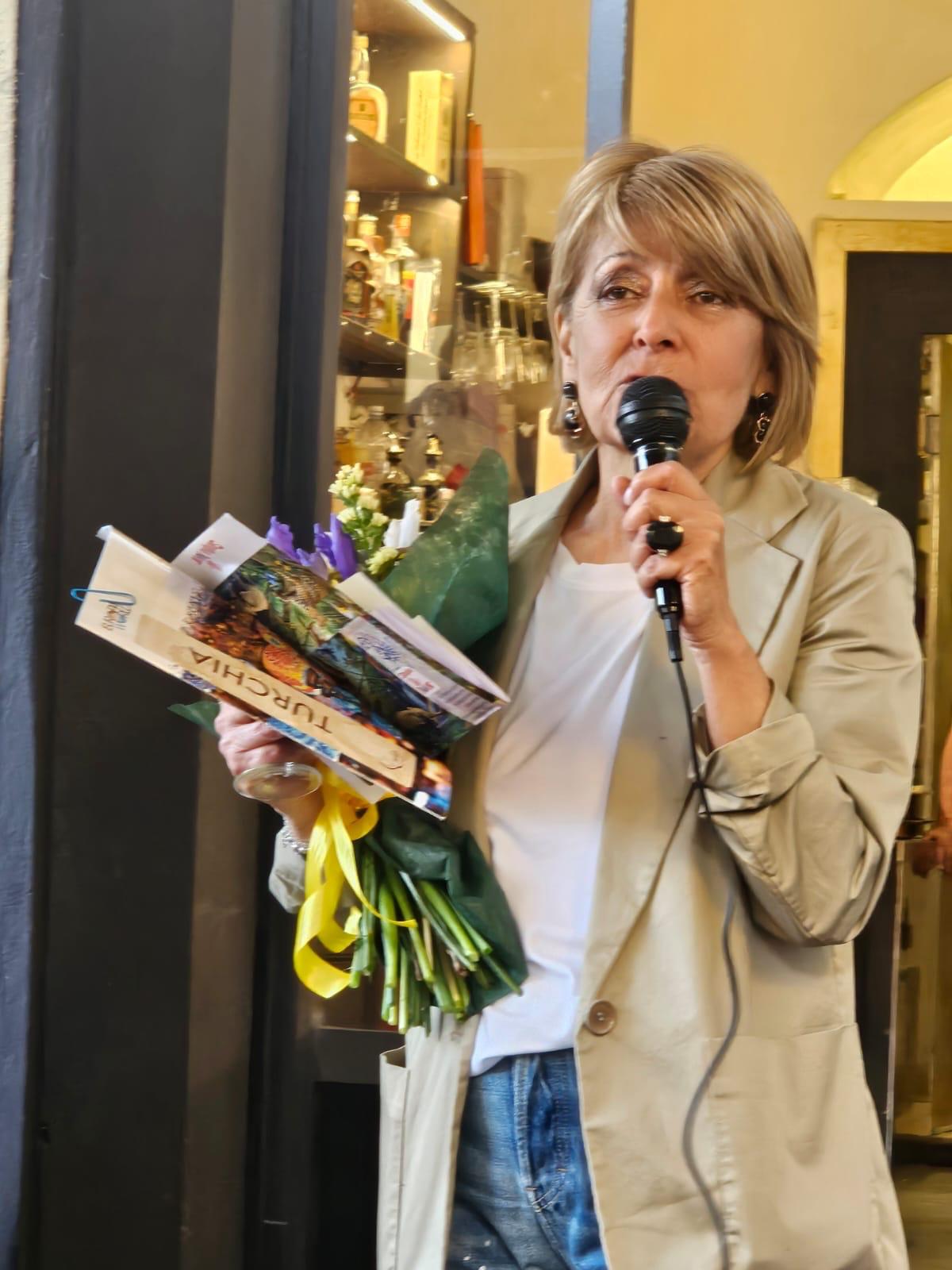Tanti i messaggi augurali che le autorità comunali hanno rivolto alla Cedroni, tra i quali quello dell’ex sindaco Daniele Benedetti (unico in quindici anni ad aver meritato una parte in una puntata di Don Matteo) e della già dirigente alla cultura ed eventi, Stefania Nichinonni che alla funzionaria ha dedicato un simpatico omaggio in rima: