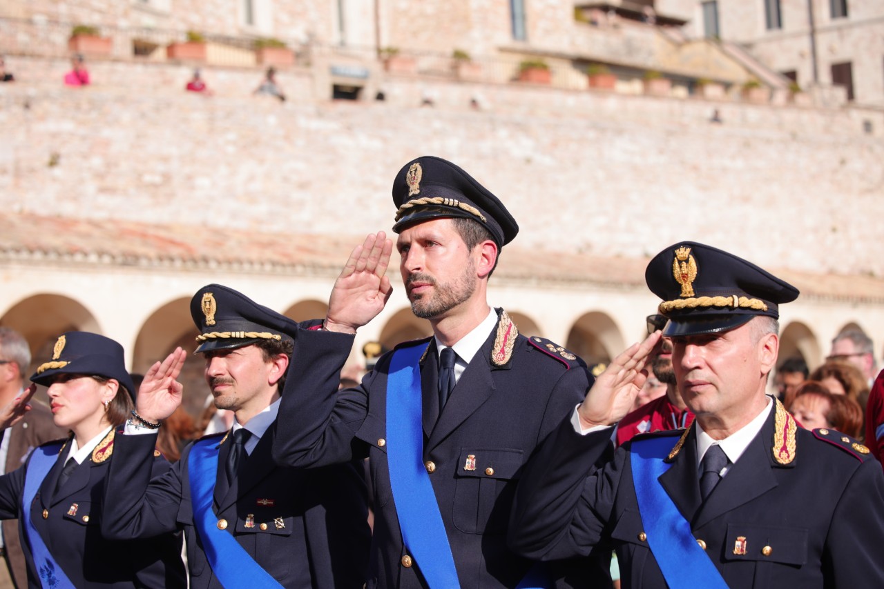 Ieri è stato il gran giorno, anche in Umbria, della festa della Polizia di Stato per i suoi 173 anni di impegno e dedizione al servizio del Paese: dopo la cerimonia a Perugia, grande festa ad Assisi, nella piazza inferiore di San Francesco – alla presenza tra gli altri del Capo della Polizia e Direttore Generale della Pubblica Sicurezza, Prefetto Vittorio Pisani: “La sicurezza è un bene pubblico che va garantito alla comunità, senza distinzione alcuna di razza, religione, etnia o lingua, ed è il presupposto per garantire il pacifico esercizio dei diritti e delle libertà fondamentali, perché ogni essere umano ha diritto alla sicurezza della propria persona. La Polizia di Stato deve continuare ad avere la capacità di porre al centro l’uomo ed accanto a lui il poliziotto, affinché la costante vicinanza possa contrastare quello smarrimento e isolamento che queste nuove minacce portano in sé”, un passaggio del suo discorso.