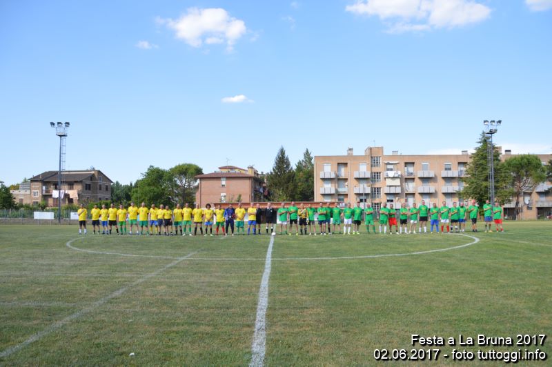 Giugno si sa è il mese della Bruna, il mese in cui il popolo giallo-verde da sempre festeggia e si festeggia: da qualche anno purtroppo non viene più organizzato il Giugno Brunese ma la voglia di diversi è rimasta invariata e così ieri pomeriggio alle 17,00 “quelli di qua del ponte” hanno sfidato “quelli di là del ponte” in una partita di pallone in stile anni ’80 a cui ha partecipato in veste di terzino sinistro anche il Sindaco Andrea Reali.