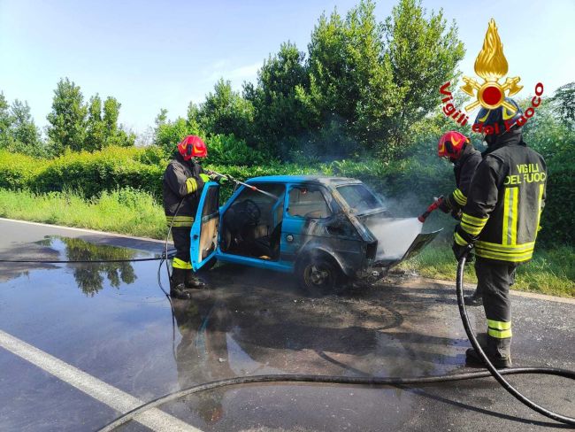 I Vigili del fuoco di Orvieto, nella mattinata di oggi 21 giugno, sono intervenuti poco dopo le ore 9,00 ad Orvieto Scalo, zona stazione, per l’incendio di una autovettura. Il conducente, una persona anziana, visto del fumo fuoriuscire dal cofano posteriore dell’autovettura, una Fiat 126 vecchio modello, ha accostato chiamando i soccorsi. I vigili, giunti sul posto, hanno provveduto a spegnere l’incendio che ha interessato tutta la parte posteriore dell’autovettura. Il traffico ha subito rallentamenti a causa della temporanea chiusura della strada. Sul posto anche i CC di Orvieto. Nessun ferito.