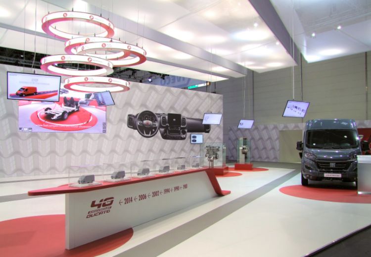 Ducato conferma i suoi tradizionali punti di forza, aggiungendo innovazioni pratiche e funzionali che lo rendono più accattivante. Tra le maggiori novità estetiche spicca l’adozione del nuovo logo Fiat vintage, di dimensioni generose, a sottolineare il senso di identità e appartenenza. La nuova griglia e il riparo motore rinforzano l’impressione di robustezza, mentre le luci led dei fari sono più luminose del 30% rispetto alle alogene. Inoltre, passando agli interni, nella cabina è stata attuata una vera “rivoluzione” volta a migliorare la qualità della vita a bordo e la praticità di utilizzo. Nuovo il volante, più piccolo e con vari comandi “a portata di dita”, mentre i pannelli porte sono stati arricchiti di ulteriori scomparti. Migliorato il controllo clima automatico, mentre l’adozione dell’accesso e della messa in moto keyless garantisce risparmio di tempo e facilità di utilizzo. Il freno di stazionamento è ora elettrico, a tutto favore della spaziosità della cabina. Nuova anche la configurazione interamente digitale della strumentazione interna, grazie al Full Digital Cockpit in grado di restituire con immediatezza e chiarezza le informazioni e gli avvisi più utili per il viaggio, con un elevatissimo grado di adattabilità alle reali necessità del guidatore. A questo si aggiungono le nuove interfacce Uconnect con schermi fino a 10″, un sistema di radionavigazione che incorpora mappe TomTom 3D e interfaccia Apple Car Play/Android Auto con sistema wireless.