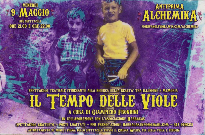 18 mesi di lavoro, circa 10 botteghe artistiche operative, più di 6 attività commerciali che sono in fase di aperture, quasi 500 associati, un nucleo di centinaia di persone che hanno ritrovato uno spirito attivo di socialità e condivisione, questi i numeri raggiunti da Fiorivano le Viole che felice dei risultati ottenuti, punta dritta verso la totale rinascita. Questo percorso vede nell’evento del 10 e 11 maggio il momento di tirare le somme, festeggiare i riusltati ottenuto e attivare uno “scambio” che esce dal quartiere per condividere successi e progetti con realtà esterne, locali e non. Ecco allora che ad Alchemika partecipano quasi 20 compagnie e oltre 10 musicisti e performer provenienti da tutta Italia che abbracciano l’associazione e i suoi intenti. Debuttano inoltre per l’occasione i progetti attivati da mesi in collaborazione con le associazioni Arragas e A.Ge Montessori: nel primo caso uno spettacolo teatrale itinerante intitolato “Il tempo delle Viole”, nel secondo “Sogno di una notte di mezza estate”, spettacolo di circo teatro interpretato dai bambini della scuola elementare Montessori di Perugia.