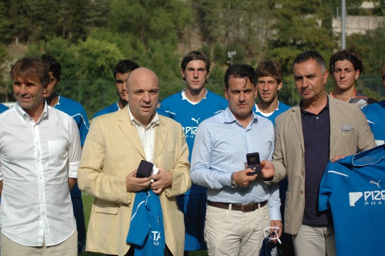 Dopo la visita al Perugia Calcio, promosso in II Divisione, e la presentazione ufficiale del Gubbio Calcio che approda prestigiosamente al campionato di Serie B, prosegue il tour delle visite ai ritiri delle squadre da parte dei vertici della Provincia di Perugia, nel quadro delle iniziative di promozione e valorizzazione del territorio. Il Presidente Marco Vinicio Guasticchi e l’Assessore allo sport dell’Ente Roberto Bertini hanno premiato con la consegna del Grifo d’Oro, nel corso del ritiro del Foligno Calcio a Nocera Umbra qualche minuto prima del fischio d’inizio dell’amichevole con il Castel Rigone, il Presidente del Foligno Calcio Maurizio Zampetti, accompagnato dal tecnico Giovanni Pagliari, e il Presidente del Castel Rigone Calcio, che si appresta ad una nuova avventura in campionato nazionale dilettanti, Brunello Cucinelli.