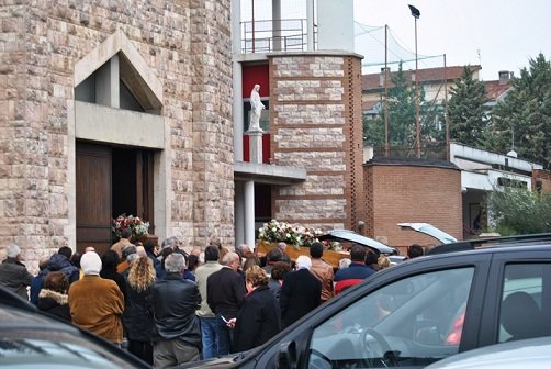 Si sono svolti oggi i funerali di Umberto Roscini e Lino Monteverde, rispettivamente suocero e genero, vittime domenica scorsa della tragedia che ha sconvolto la tranquilla frazione di San Giovanni di Baiano. Le esequie si sono tenute nella chiesa del Sacro Cuore di Spoleto e il rito religioso è stato officiato da don Canzio (parroco di S. Giovanni di Baiano) e don Alessandro. La cerimonia è stata brevissima, come pure l’omelia di Don Canzio che ha richiamato tutti ad “avere occhi per guardare le sofferenze degli altri, per guardare chi ci è vicino, osservare chi soffre la crisi e la disperazione. Il silenzio deve prevalere sullo smarrimento e gli interrogativi”. Nella chiesa affollata c’erano anche molti esponenti della Giunta e i dirigenti del Partito Democratico che hanno così voluto testimoniare la loro vicinanza alla figlia di Monteverde, segretaria amministrativa del piddì.