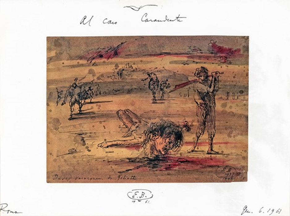 Su segnalazione dell’Associazione Amici di Palazzo Collicola, infatti, la Fondazione Cassa di Risparmio di Spoleto ha proceduto all’acquisto, presso la casa d’asta “Arcadia” in Roma, di una scultura in ferro di Carlo Lorenzetti del 1961, già esposta nel 1962 nell’ambito della manifestazione “Sculture nella Città”, e di un disegno di Eugene Bermann con dedica autografa a Giovanni Carandente che raffigura Davide e Golia.