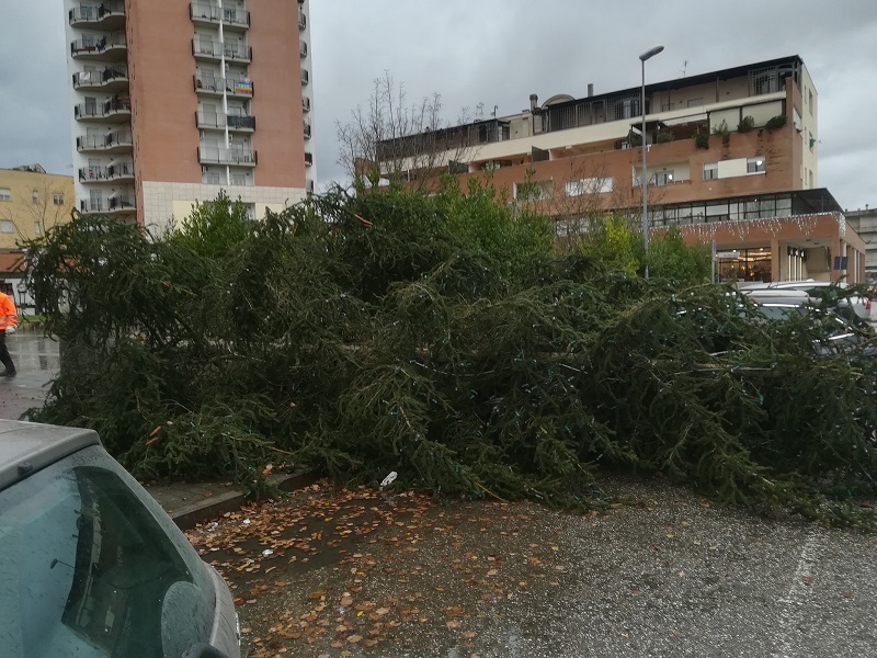 Al momento della caduta – col pesante piedistallo che non ha retto al peso dell’albero spostato dalle forti folate – destino ha voluto che fossero presenti poche (e spaventate) persone, anch’esse molto lontane dall’abete.