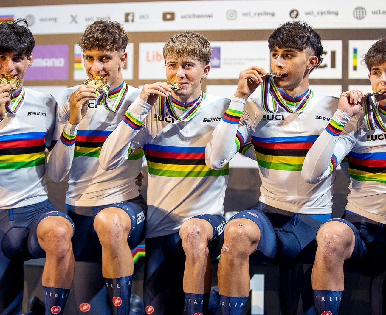 La perfetta regia di Cornacchini, schierato dal CT Dino Salvoldi nel delicato ruolo del lancio con partenza dai blocchi, ha dato il giusto abbrivio al trenino azzurro, capace di scavare il solco decisivo già nell’arco del secondo dei 4 km totali di gara. Il tempo finale di 3’54’’562, di quasi un secondo e mezzo più veloce rispetto a quello dei diretti concorrenti, ha sancito quindi la chiara affermazione dei nostri portacolori, con Riccardo Colombo, Alessio Magagnotti, Francesco Matteoli e Federico Saccani che hanno condiviso insieme all’atleta umbro la gioia della medaglia d’oro e della maglia iridata. Un collettivo questo che nelle ultime settimane ha dimostrato di avere tutte le carte in regola per raccogliere in futuro l’eredita del quartetto guidato da Filippo Ganna e Jonathan Milan, protagonisti del trionfo a cinque cerchi di Tokyo 2020, in una specialità cardine del programma olimpico dell’endurance.