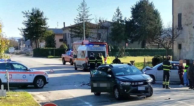 Brutto incidente nel pomeriggio odierno (16 febbraio) lungo viale Romagna, a Cerbara (Città di Castello), proprio davanti a “La Farma”.