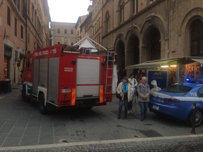 Immediato è scattato l’allarme ai pompieri, anche dopo che il fumo ha cominciato ad uscire dalle finestre del primo piano del palazzo. L’immediato intervento dei vigili del fuoco ha consentito di domare le fiamme da subito, senza che l’incendio riuscisse a propagarsi pericolosamente. Fortunatamente non si registrano persone ferite o intossicate, nonostante all’interno del locale ci fosse il personale al lavoro e la zona fosse molto frequentata in concomitanza di Eurochocolate, che si svolge, con i suoi stand, proprio in questi giorni per le vie del centro storico.
