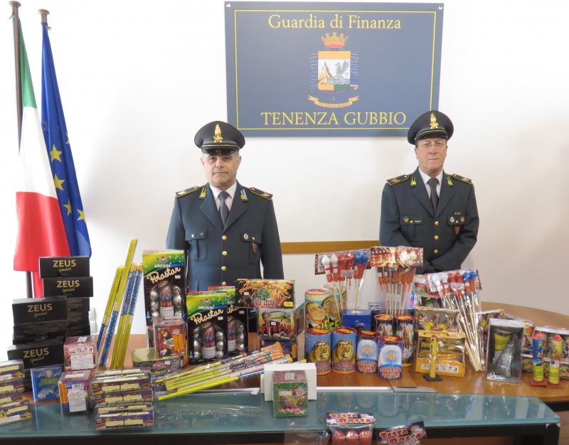 Circa 3.500 pezzi di fuochi di artificio, tra “batterie”, “cobra”, “raudi” e “candele romane”, contenenti complessivamente 10 kg di polvere attiva. Questi, nel dettaglio, sono i prodotti pirotecnici illegali sequestrati, a pochi giorni dalla notte di San Silvestro, dai militari della Guardia di Finanza di Gubbio.