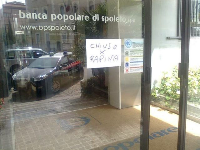E' il solito metodo del “cappuccio e taglierino” quello utilizzato ieri mattina da tre ragazzi, tutti intorno ai venti anni, per rapinare la filiale della Banca Popolare di Spoleto, a Torgiano.