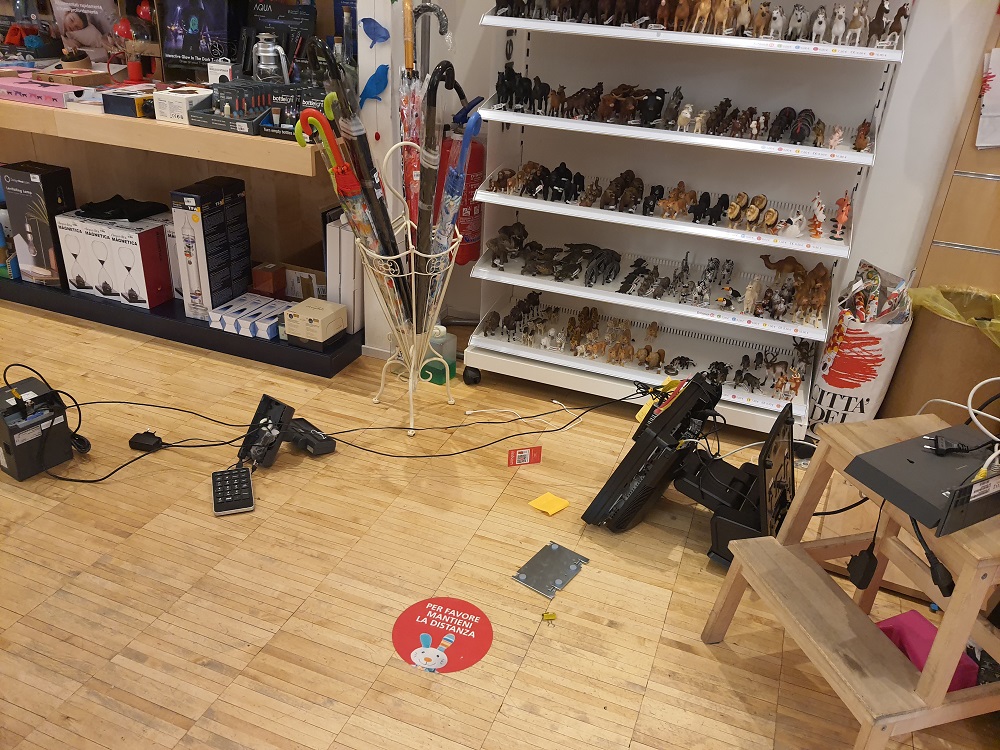 Furto con spaccata nella notte in via Oberdan. I ladri, dopo essersi introdotti dalla porta di vetro sfondata con una spranga di metallo, hanno preso la cassa del negozio Città del Sole, che vende giocattoli per bambini realizzati con prodotti naturali.