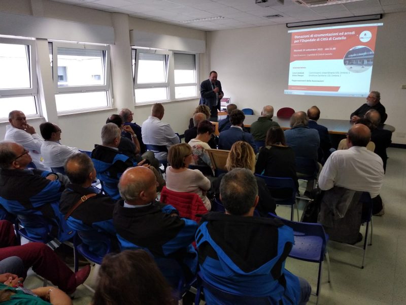 Con il ricavato di uno spettacolo della Compagnia teatrale “O tutti o nessuno” presso il Teatro degli Illuminati, unitamente ai contributi del Coordinamento per la salute di Città di Castello e delle “Società Rionali/Proloco del territorio” è stata acquistata una barella multifunzione per il pronto soccorso, struttura quest’ultima che ha anche ricevuto un fabbricatore di ghiaccio acquistato da Nicoletta Carletti.