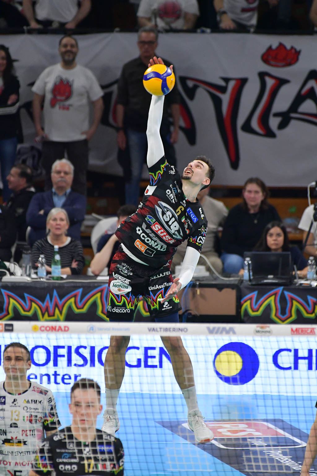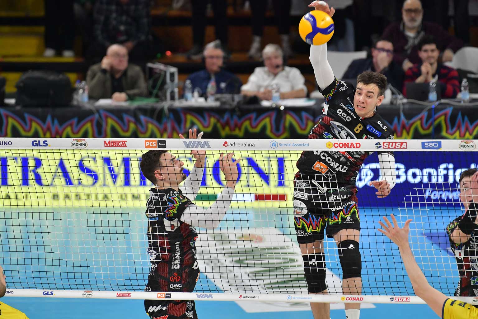I bianconeri chiudono con il 54% di efficacia in attacco, 6 ace e 10 muri. Capitan Giannelli, Mvp della gara, fa girare i suoi attaccanti, che chiudono quasi tutti in doppia cifra, mettendo a referto anche 7 punti diretti, di cui 3 ace e 2 muri.