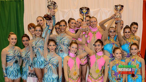 Le ragazze spoletine scendono in pedana per settime, un buon sorteggio, la prima a scendere in pedana è stata Agnese Duranti all’esordio in A2, nessuna paura, ottimo esercizio e porta a casa un 23,450 di tutto rispetto, poi è stata Eleonora Nobili, anche lei esordiente, ad effettuare il secondo esercizio, quello alla fune, anche per lei una buona esecuzione premiata con 22,500, scende in pedana al cerchio Francesca Nardi che ottiene il punteggio di 20,850, poi gli ultimi tre esercizi sono un crescendo di emozioni, 26,400 alla palla per il bronzo olimpico di squadra Andreea Stefanescu, la migliore in questo attrezzo, la segue Giulia Ricci alle clavette con 23,675 seconda nel parziale dell’attrezzo solo alla spagnola del Petrarca Arezzo, conclude una splendida Alexandra Piscupescu al nastro con 26,300 anche per lei il secondo punteggio parziale dopo la bulgara Silvia Miteva finalista olimpica. Il punteggio totale ottenuto dalla Fenice è di 143,150 che le porta in testa alla classifica parziale davanti all’a Ginnastica Etruria di Prato. Seguiranno poi tre ottime squadre la Ginnastica Terranuova che arriva a 142,025 insediandosi al 4° posto, la formazione sarda della Ritmica 2000, che con il 28,00 netto di Miteva si porta come squadra in 5^ posizione. Ultima a scendere in pedana la Ginnastica Nervianese, altra ottima formazione che vanta inoltre fra le sue fila il bronzo individuale olimpico Liubov Charkashyna, infatti è proprio lei ad ottenere il punteggio più alto in assoluto della giornata con 28,100 al cerchio, la Nervianese si piazza così al primo posto con il punteggio totale di 144,425.
