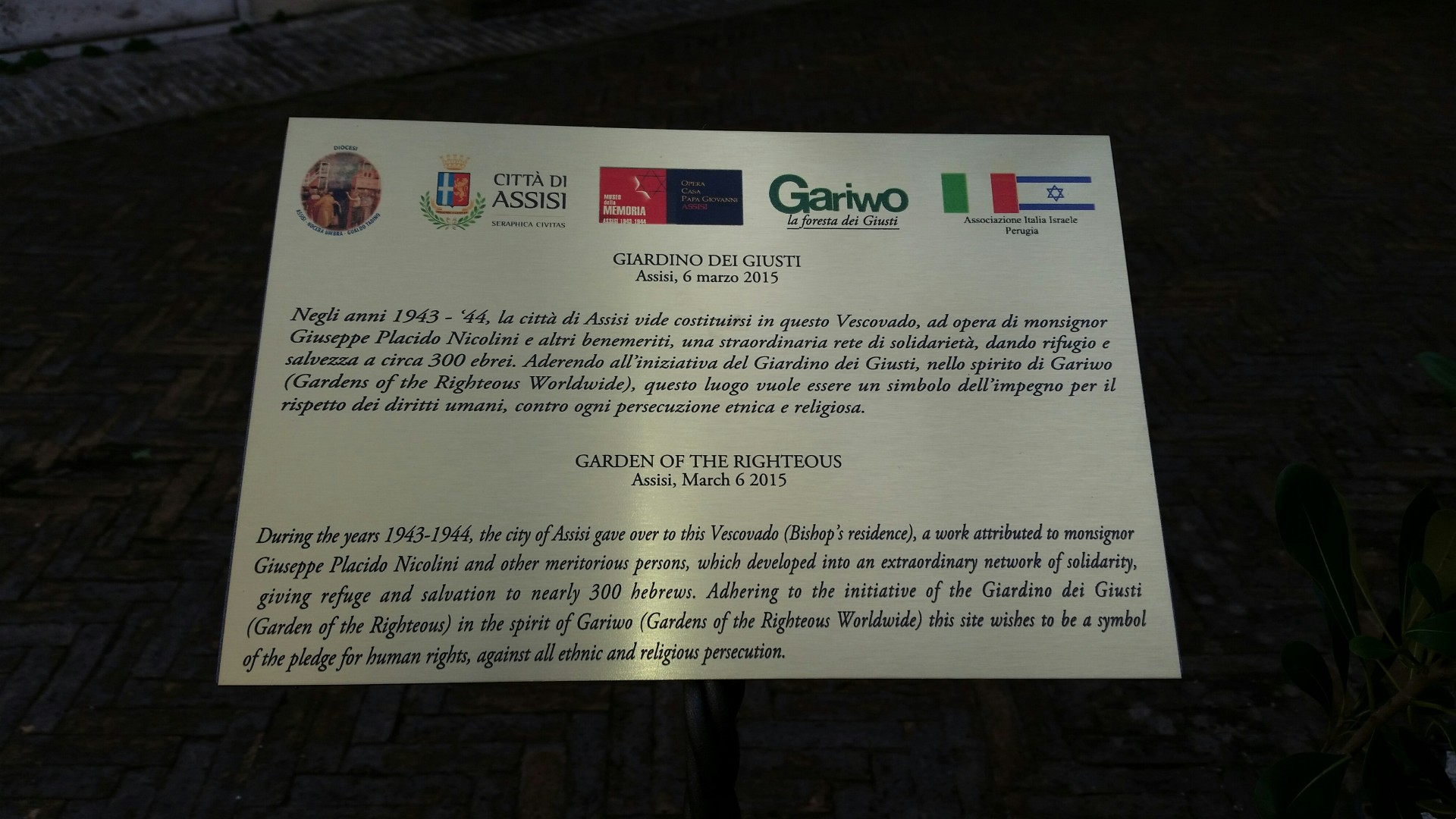 “Assisi può contare – spiega la curatrice del Museo della memoria, Marina Rosati – sull’esempio di ben sette Giusti della Shoah (Monsignor Placido Nicolini, don Aldo Brunacci, padre Rufino Niccacci, Luigi e Trento Brizi, suor Giuseppina Biviglia e suor Ermella Brandi) ma anche su quello di tanti altri cittadini che, nel periodo delle persecuzioni razziali collaborarono alla rete clandestina che salvò gli ebrei. Anche in altri momenti questa città ha mostrato il suo lato migliore e ben presto ricorderemo questi straordinari personaggi nel nostro Giardino dei Giusti. Quest’anno, vista la situazione pandemica e la profonda sinergia con Gariwo che, nel 2015 partecipò con un suo rappresentante all’inaugurazione del nostro Giardino, aderiamo alle loro iniziative che potranno essere seguite via streaming”.