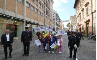 didattica per le vie della città, durante la quale i rappresentanti dei corpi di polizia hanno illustrato ai bambini i comportamenti da tenere in caso di attraversamenti pedonali, incroci e percorsi quotidiani ritenuti pericolosi.